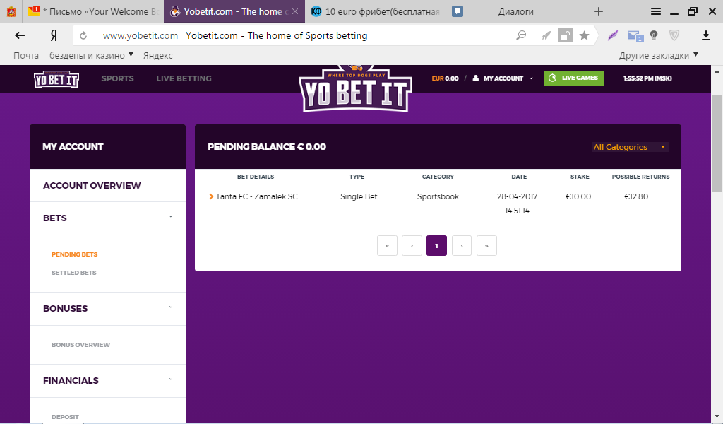 Бездеп 10 euro фрибет(бесплатная ставка) за регу