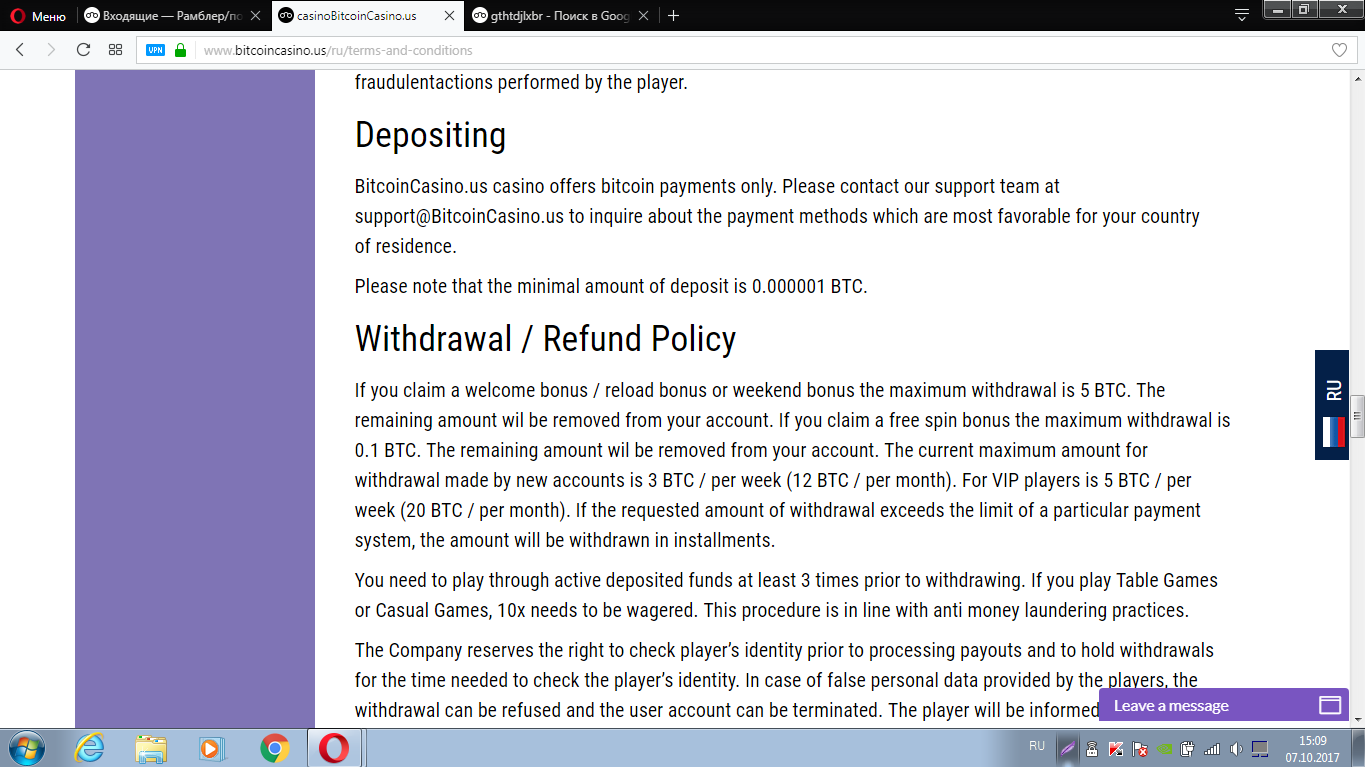 10 фриспинов за регистрацию BitcoinCasino.us