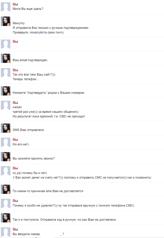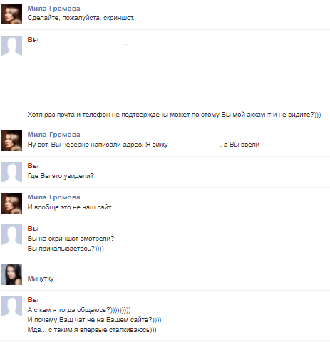 T0P3R написал(а): Ха, прикольный диалог) Ты с Владивостока?) Нажмите для раскрытия... Диалог самого впечатлил))) особенно момент где она заявила что это вообще не их сайт))) Нет,не с Владивостока,с города Юности.