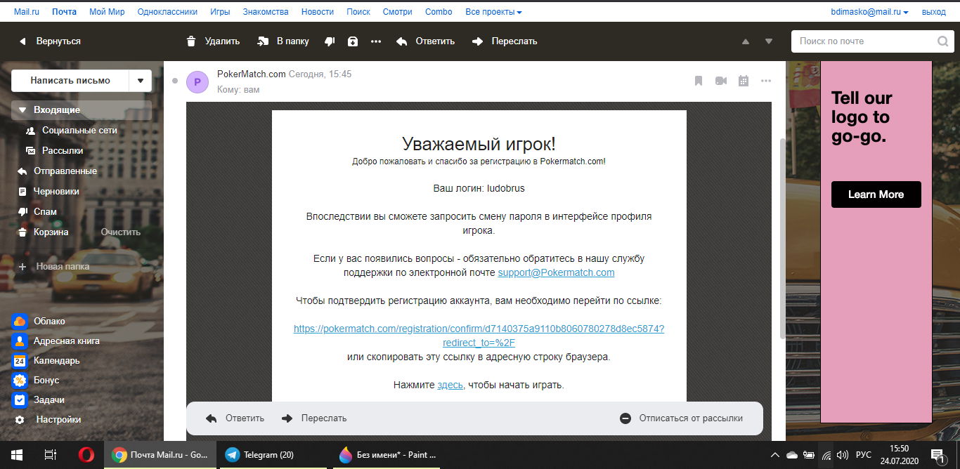 3. Сделать скриншот подтвержденной регистрации! (На скрине должно быть видно: дата, время и лого сайта!)
