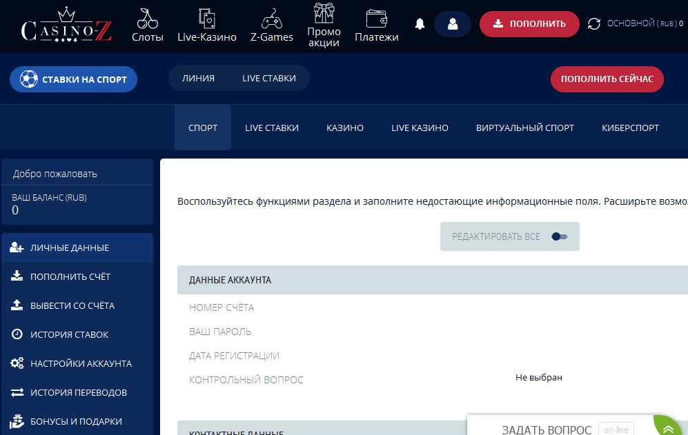 казино CASINO-Z разыгрывает 1000 рублей за регистрацию в казино