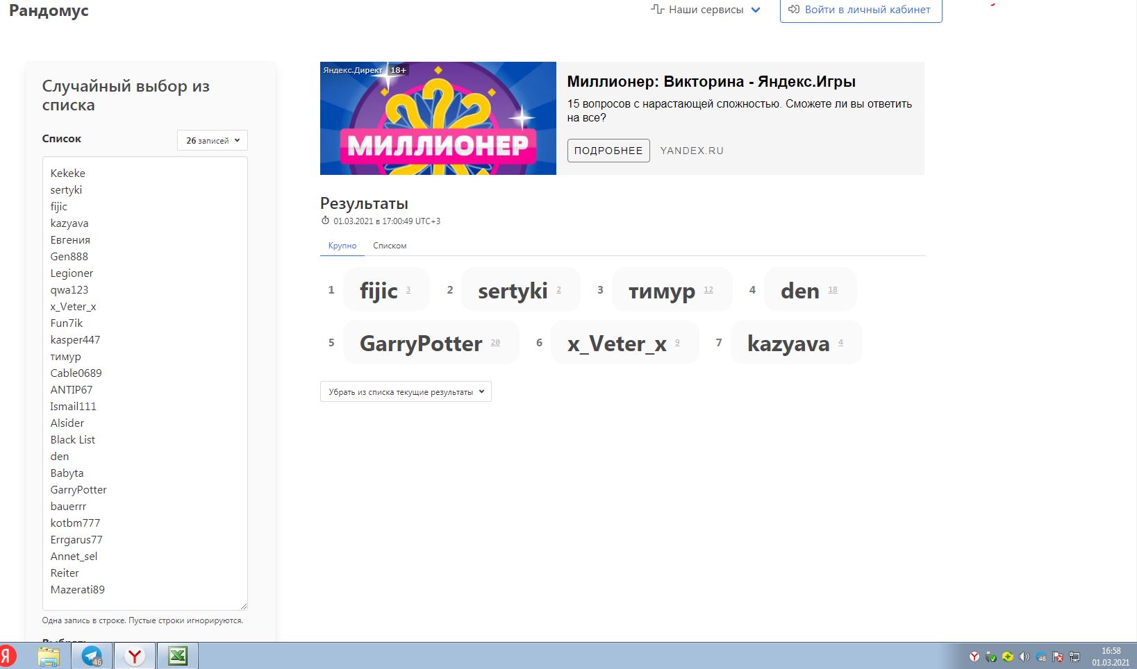 По 100 кредитов получают @тимур, @den, @GarryPotter, @x_Veter_x, @kazyava