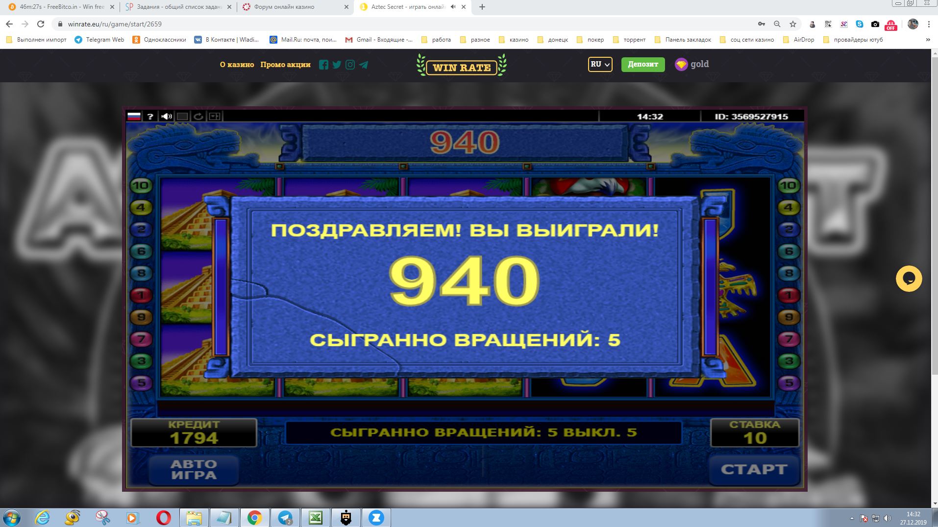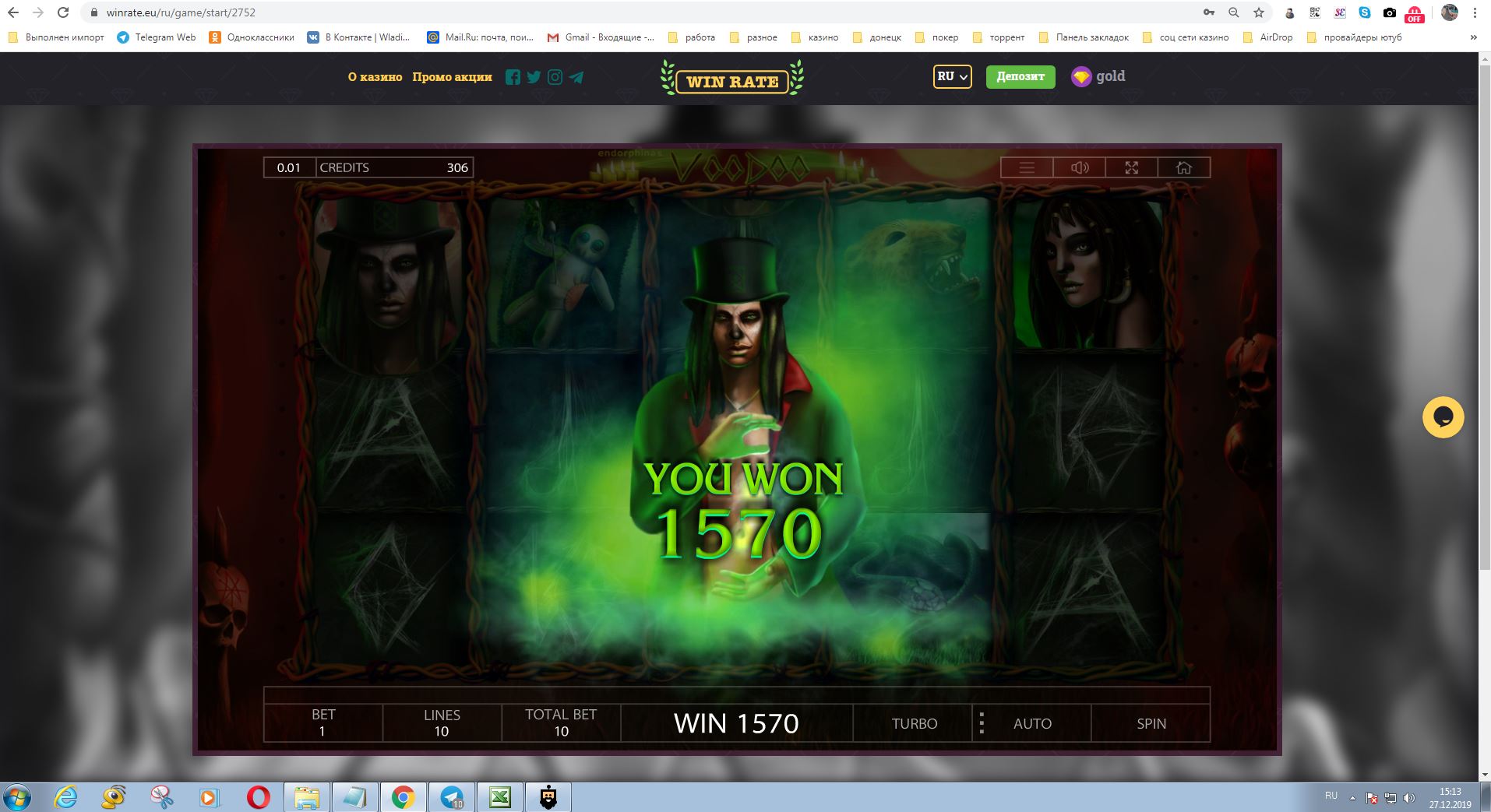 Обратите внимание, что сегодня в казино WinRate дают релоад на все депозиты 20%.