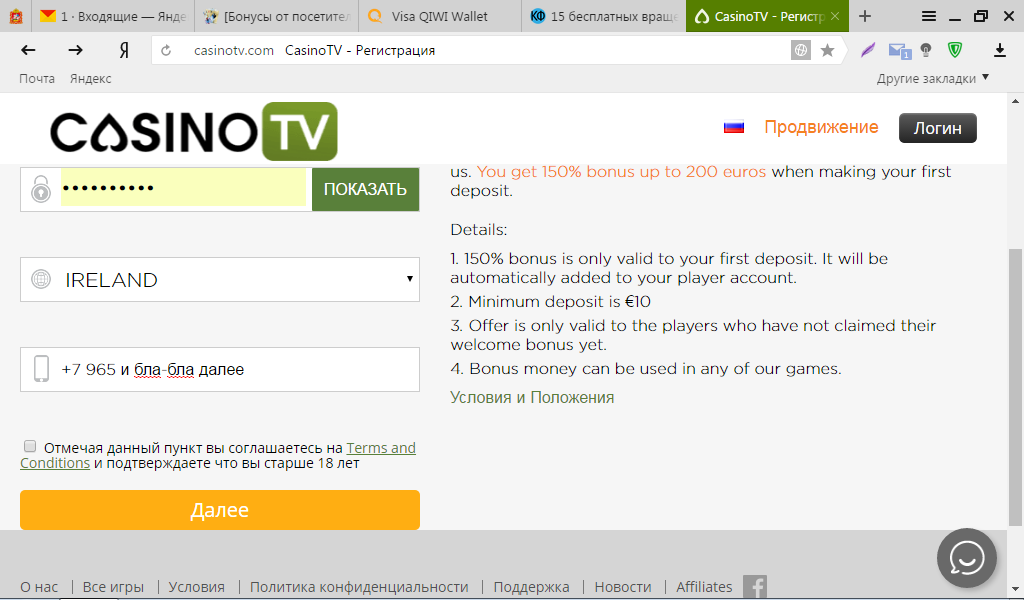 не там смотрел Предложение без депозита: Зарегистрируйтесь на нашей нашей странице, и вы автоматически получите 15 бесплатных закруток. Спины можно использовать в слоте Quest of Gonzo's. Спины действительны в течение 7 дней после регистрации учетной записи. Спины свободны. Резиденты из следующих стран имеют право на получение бонуса: Австрия, Австралия, Бельгия, Финляндия, Ирландия, Швейцария, Новая Зеландия, Нидерланды, Норвегия, Россия и Швеция. Ознакомьтесь с нашими общими условиями для бонусов в