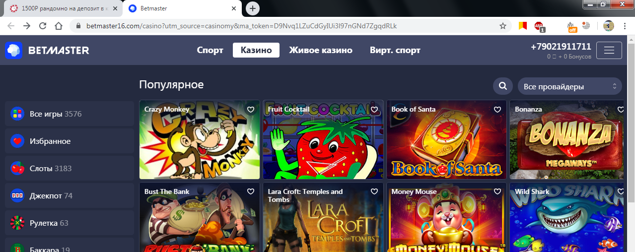 1. Перейти по ссылке из этой темы в казино BetMaster