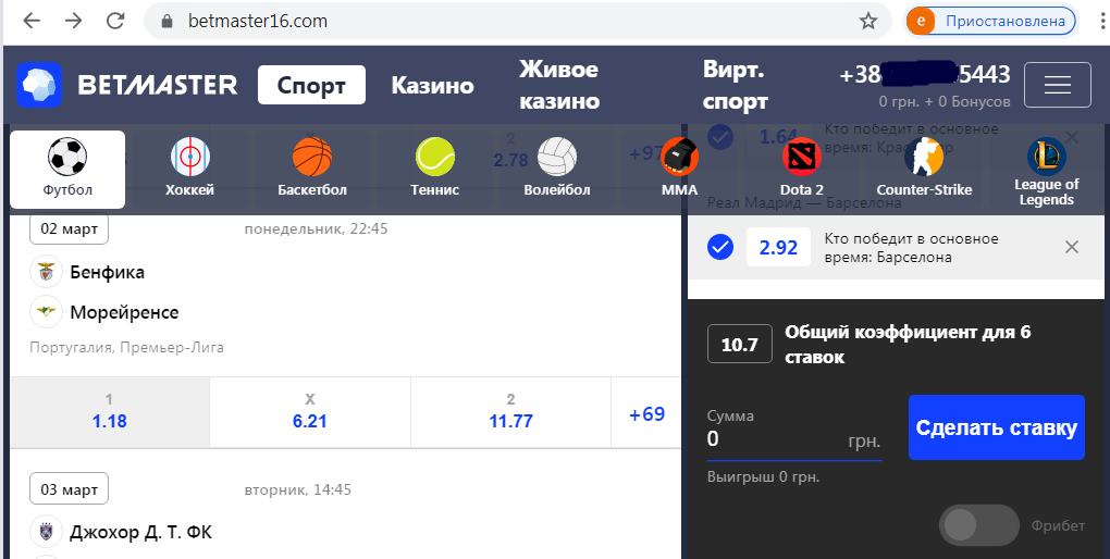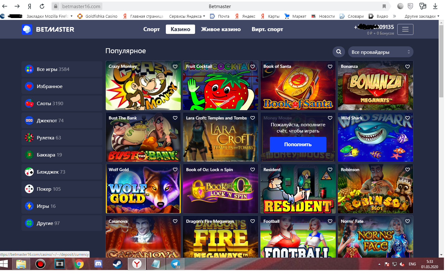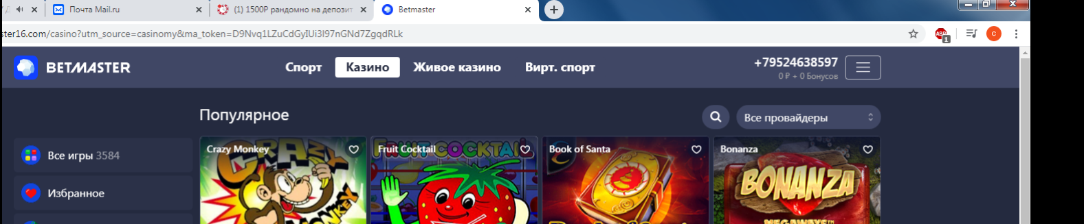 1. Перейти по ссылке из этой темы в казино BetMaster