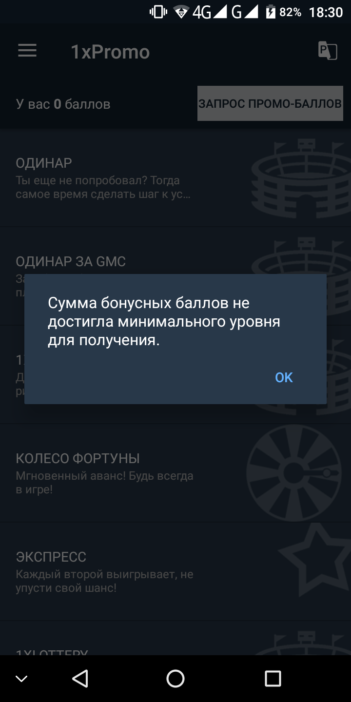 Да ёкарный бабай, куда точнее того какие скрины я скинул? Я не понимаю, какое точное название? 1xPromo это всего один раздел где запрашиваются промобаллы, чего точнее то еще надо указать? Если про то что указал человек постом выше-то допустим «одинар»,только причем тут это.. ведь сначала запрашиваются баллы, а потом уже покупаешь на них что хочешь.Добрый день! Уточните, пожалуйста, точное название акции в разделе 1xPromo, в которой в участвуете и за которою Вам должны начислять баллы.