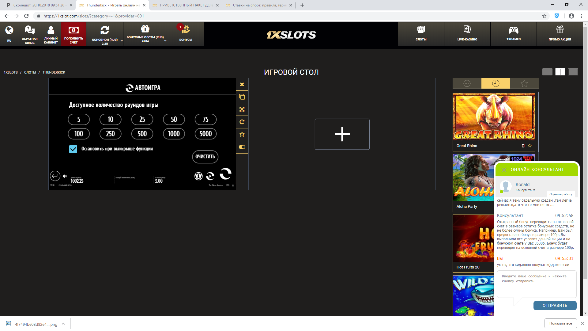 пишу в чат,там тыкаю пятым пунктом ,то есть (В нем указано что больше 1000 рублей (изначальная сумма бонуса,которую 35 раз нужно открутить) на счет не упадет,нигде такой херни не видел,но это еще не все,ну думаю дай покручу с 1000 может подниму что то,поднял 2500,и тут снова обнуление до 1000,чат недоступен,Это развод в откровенной форме,первый раз терпимый,второй раз откровенный!
