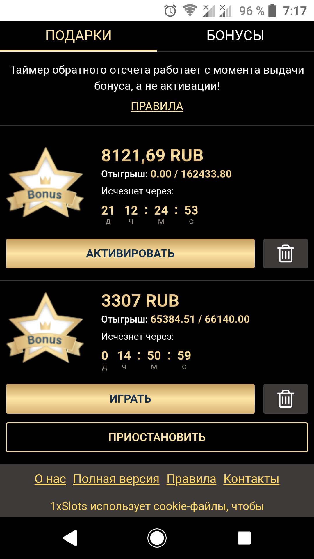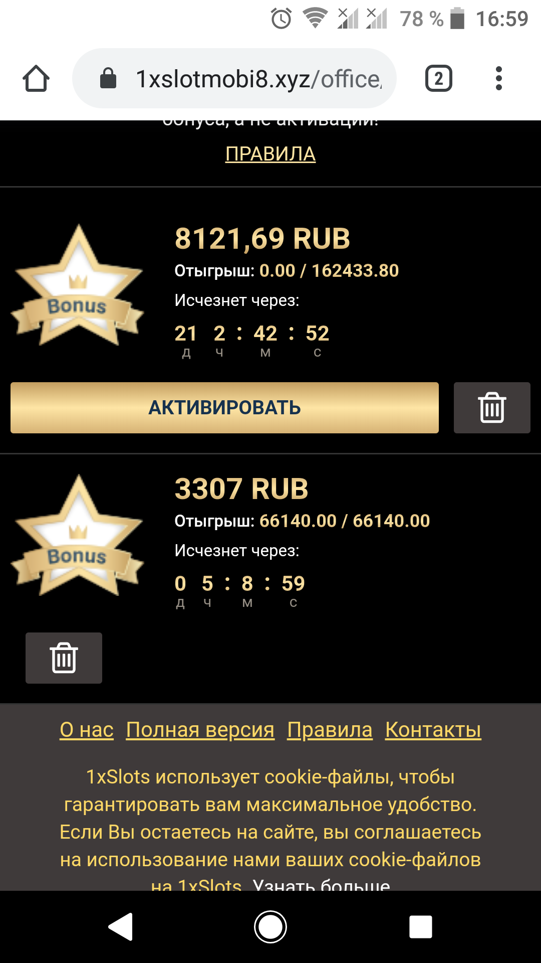 Про вагер, но я вот что заметил, я не один вагер уже отбил и все как по заказу. В начале, где то процентов 40+ идет как по маслу, вагер отбивается с легкостью, но когда почти отбил, стоп игра! Казино перестает играть, депозит за депозитом. Пример: Начал отбивать вагер, депозит 300 рублей - отбил 5000 рублей, не плохо да? Дальше, стоп кран. Депозит 300 рублей - отбил 400 рублей. Но уже отбита больше половины вагера и тут становится делом принципа отбить до конца вагер. Я думаю не у меня одного так, есть еще люди у кого на какой-то части вагера перестают играть слоты.