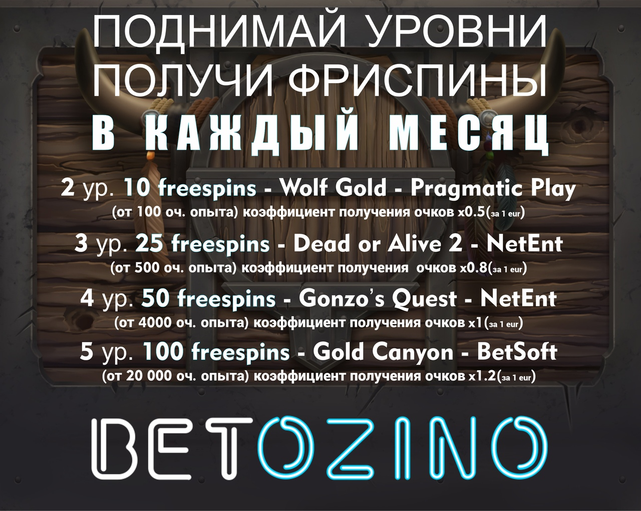 ПОДНИМАЙ УРОВНИ! ПОЛУЧИ ФРИСПИНЫ! В КАЖДЫЙ МЕСЯЦ!