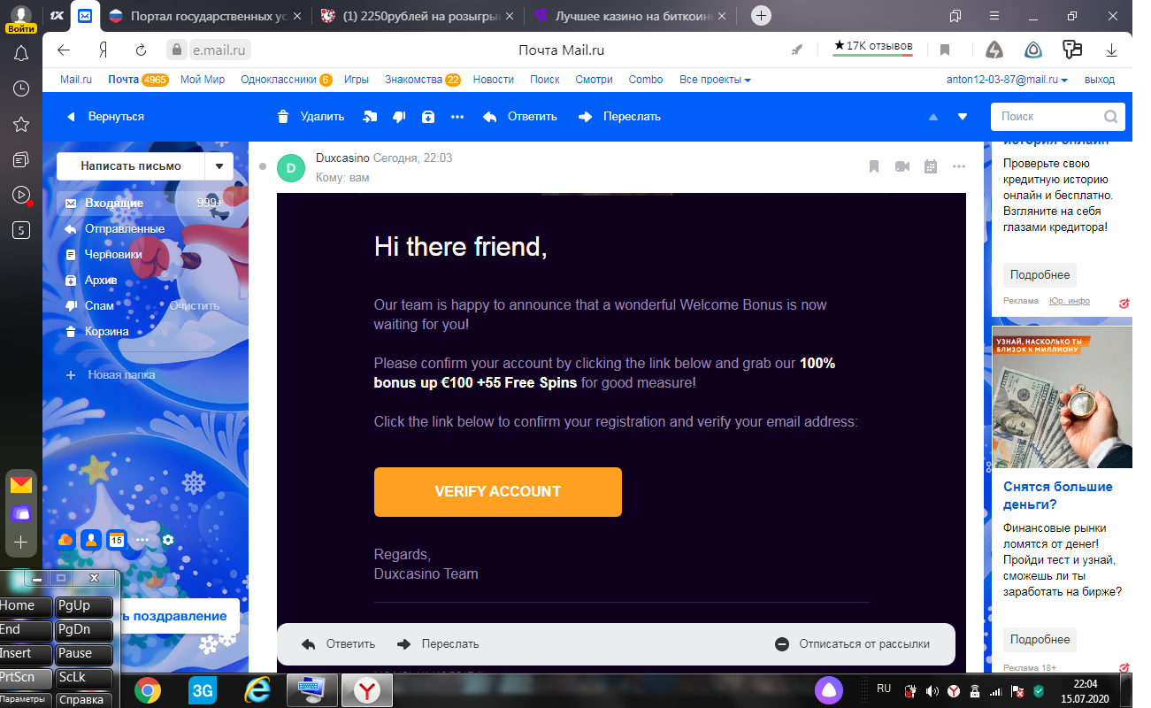 сделать скриншот письма о подтверждении имейла и выложить в теме
