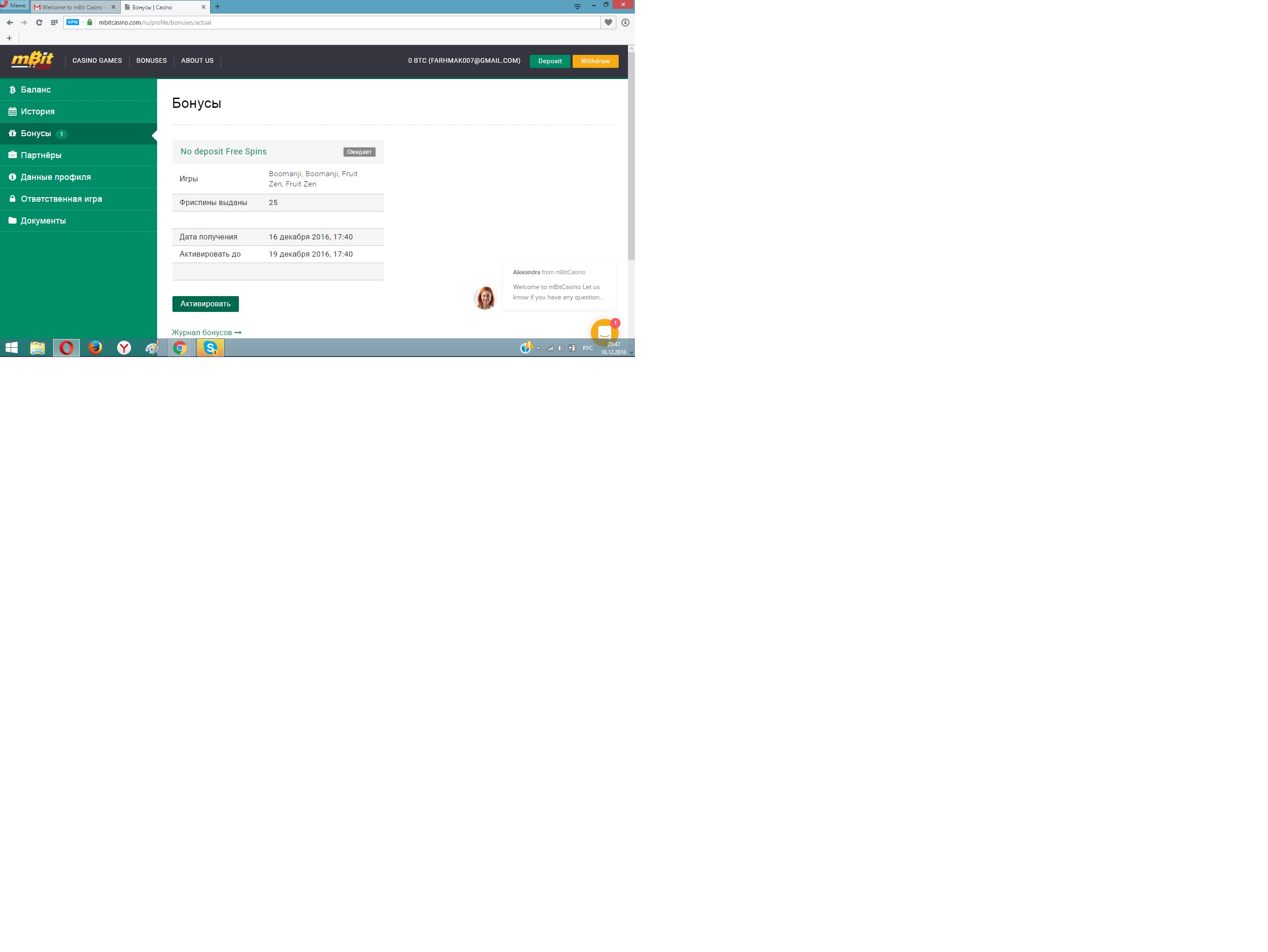 привет всем.кому то приходило письмо от казино Mbit о том что дают бездепозитный бонус 25 спинов и еще 25 если пройдете опрос. не ведитесь - очередной развод от этого заведения. все прошел - обратился в саппорт - они говорят игрокам из рф не положено. пишу - а письмо? ответ - ну так получилось - у нас такие правила