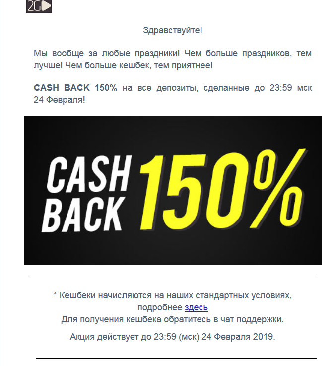 Все кешбеки (и 10% и 125%) получаются только после обращения в чат! Обращаемся в чат после КАЖДОГО депозита и просто указываем какой кешбек хотим получить.