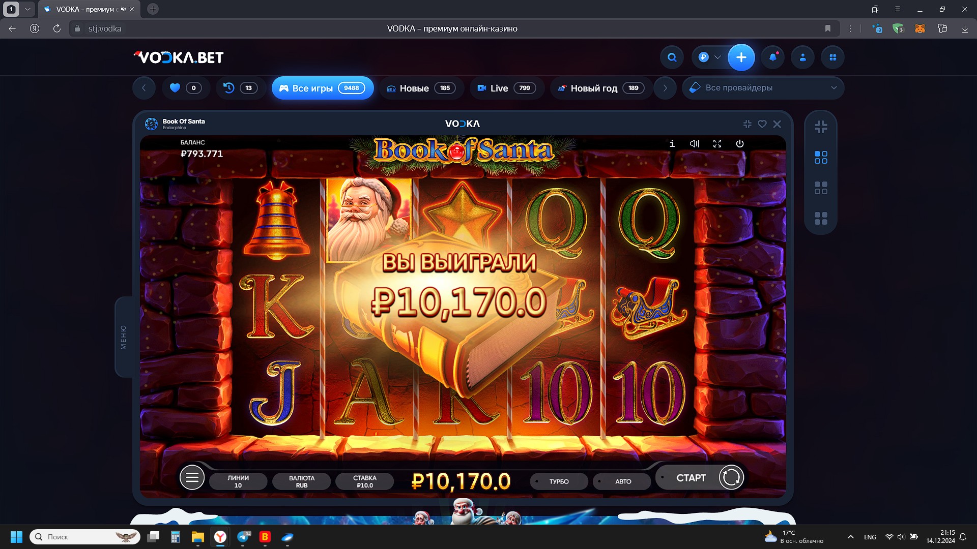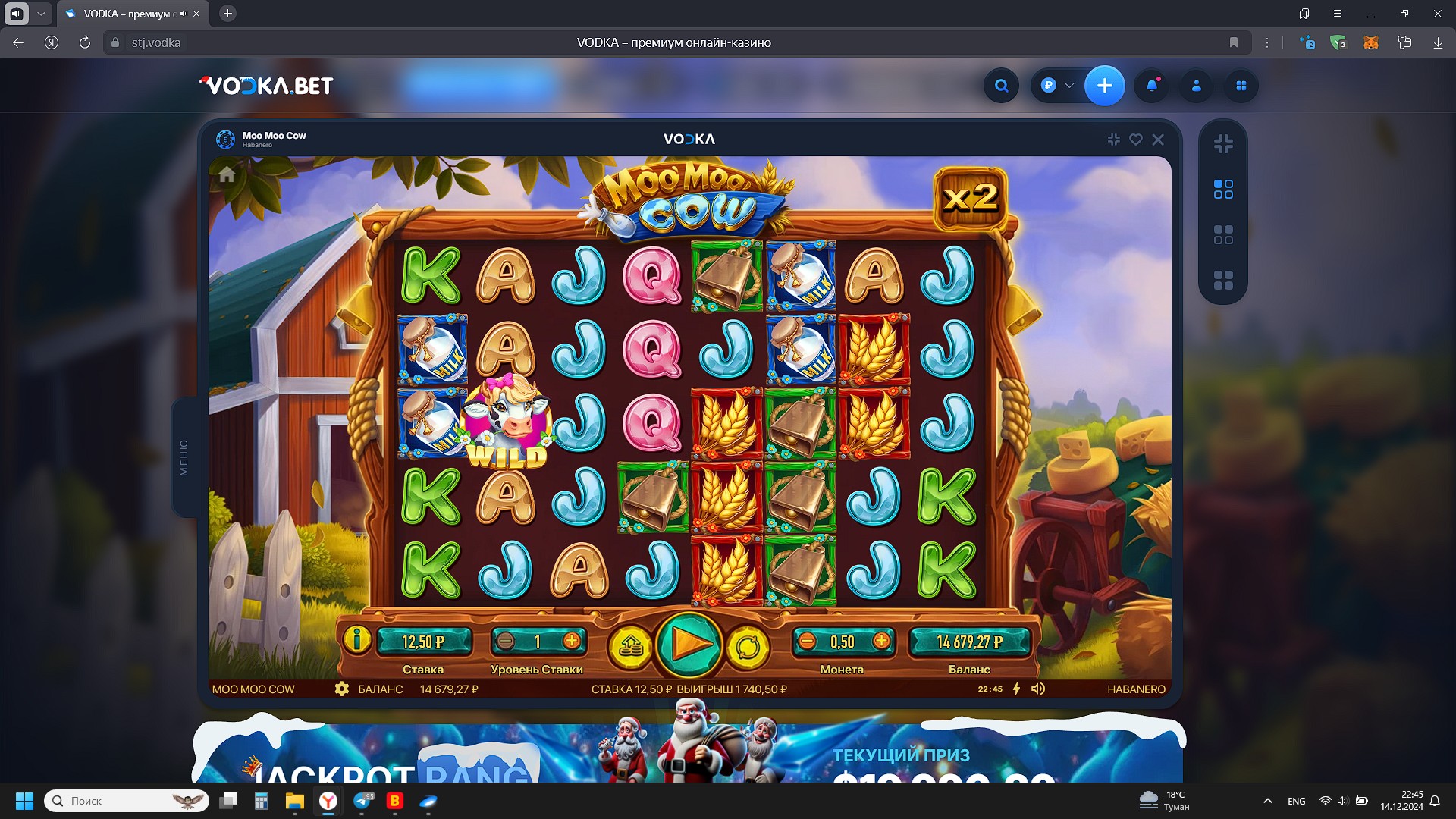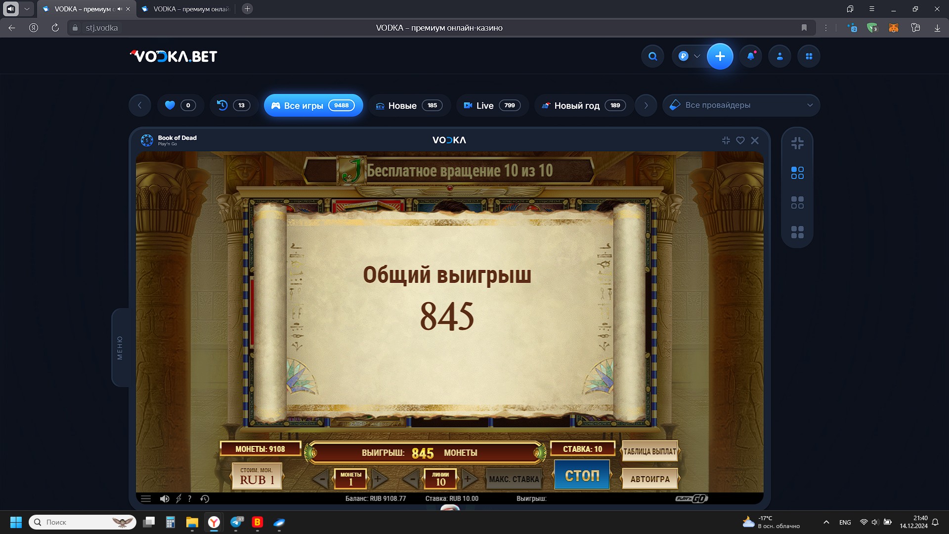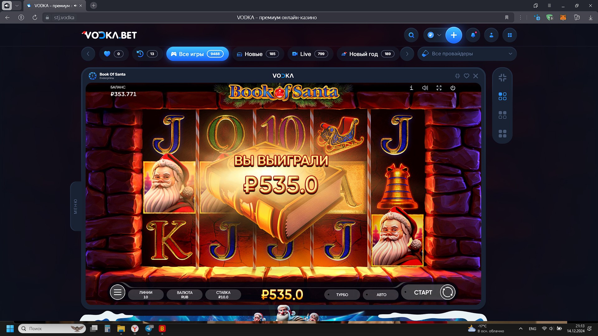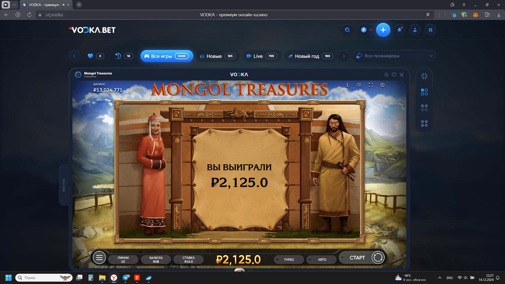 2000 рублей в казино Vodka bet