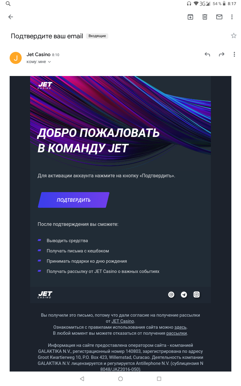 подтвердить почту и заполнить профиль игрока