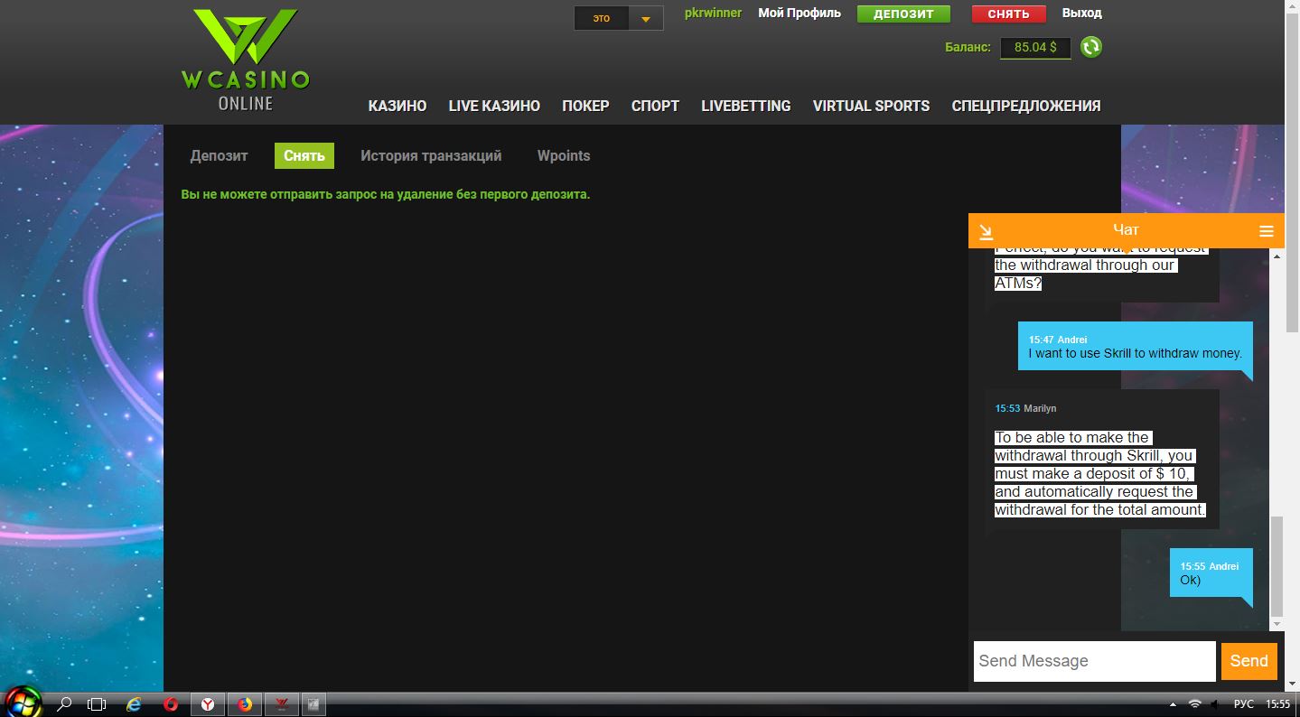 Короче ребята я тоже отмыл полноценно бон на счету вот такая сумма наверно буду депать счас с скрила и бон возьму на первый деп была не была .. + фрихи с плюшками - только в онлайн чате узнаю что и как с выводом потом ! Ну и вагер какой .