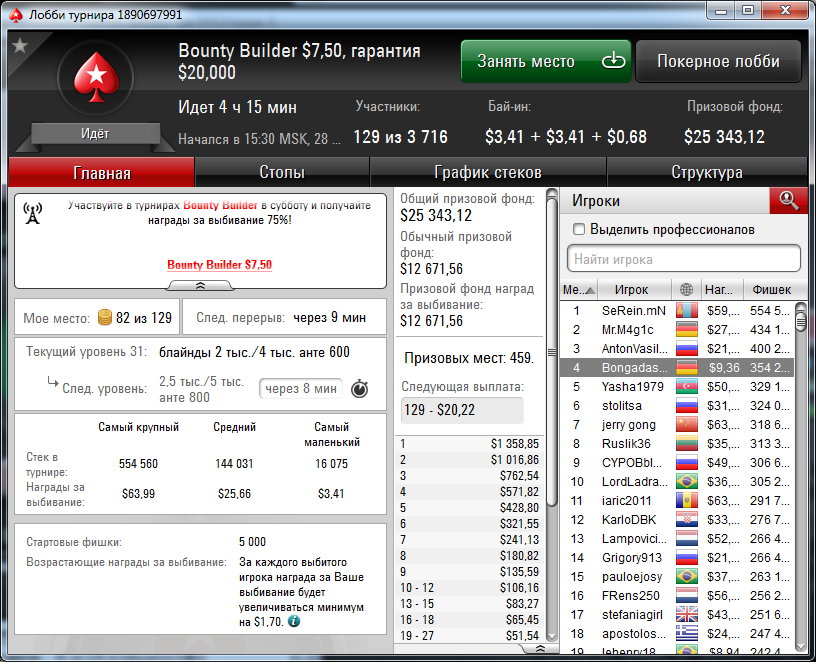 Скоро кстати еще один проход в деньги намечается ( 300 чел осталось, 278 призовых мест) если зайду в топ 50- разыграем еще пятак. Так что не теряйтесь.