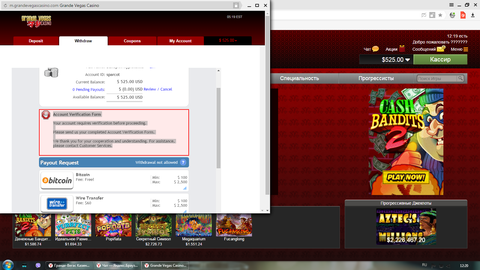 Обратите внимание, что прежде чем ваш первый вывод можно заказать, мы требуем следующие документы, отправленные в цвет, для проверки: Удостоверения личности (паспорта/водитель) Недавний счет за коммунальные услуги в качестве подтверждения адреса (последние 2 месяца) Пожалуйста, позвольте до 2 рабочих дней для обработки. По электронной почте документы: [email protected] пожалуйста, ознакомьтесь с нашими условиями по https://www.grandevegascasino.com/en/terms-conditions 14:12:18"26. Счета из следующих стран, будут освобождены от погашения бонус при создании учетной записи: Греция, Польша, Россия, Великобритания, Румыния, Болгария, Маврикий, Португалия и Индонезии." Спасибо за общения! Из-за отсутствия ответа этот чат будет закрыт. Пожалуйста, свяжитесь с нами снова, если вам потребуется дальнейшая помощь.