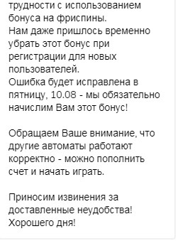 Мы выявили проблему, которая мешала системе начислить фриспины на аккаунты игроков.