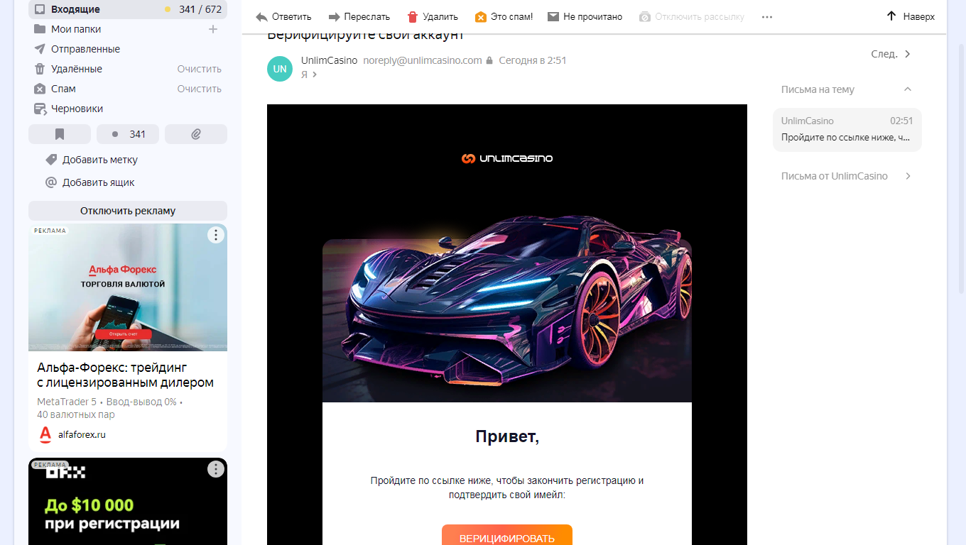 2. Зарегистрироваться в новом казино по форумной ссылке и выложить скрин письма от казино, где будет видно, что регистрация была после публикования ссылки в этой теме.