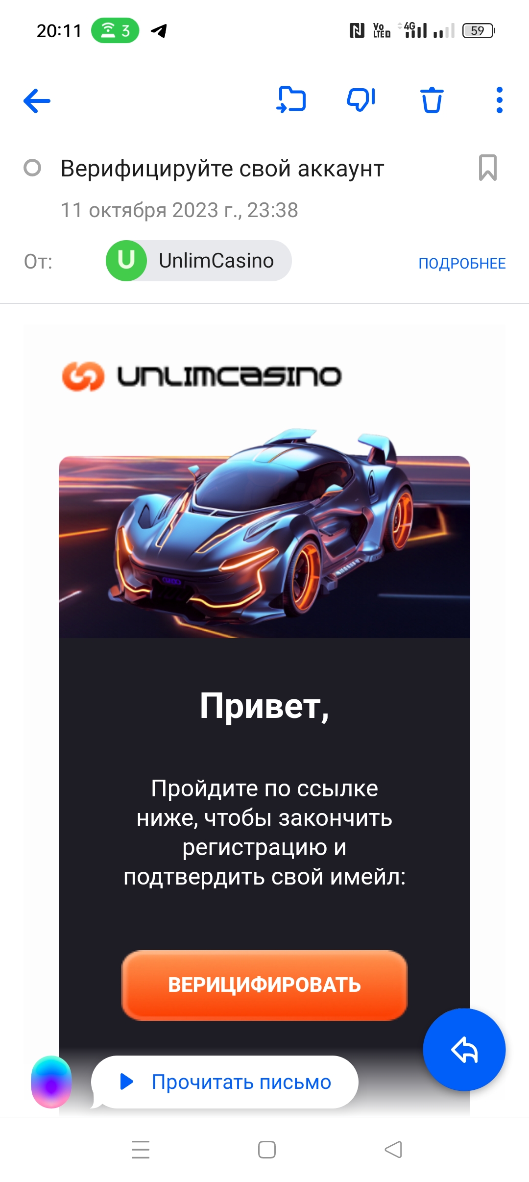 2. Зарегистрироваться в новом казино по форумной ссылке и выложить скрин письма от казино, где будет видно, что регистрация была после публикования ссылки в этой теме.