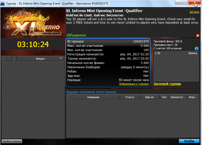 Играйте в ежедневном отборочном турнире XL Inferno с помощью 2 БЕСПЛАТНЫХ билетов