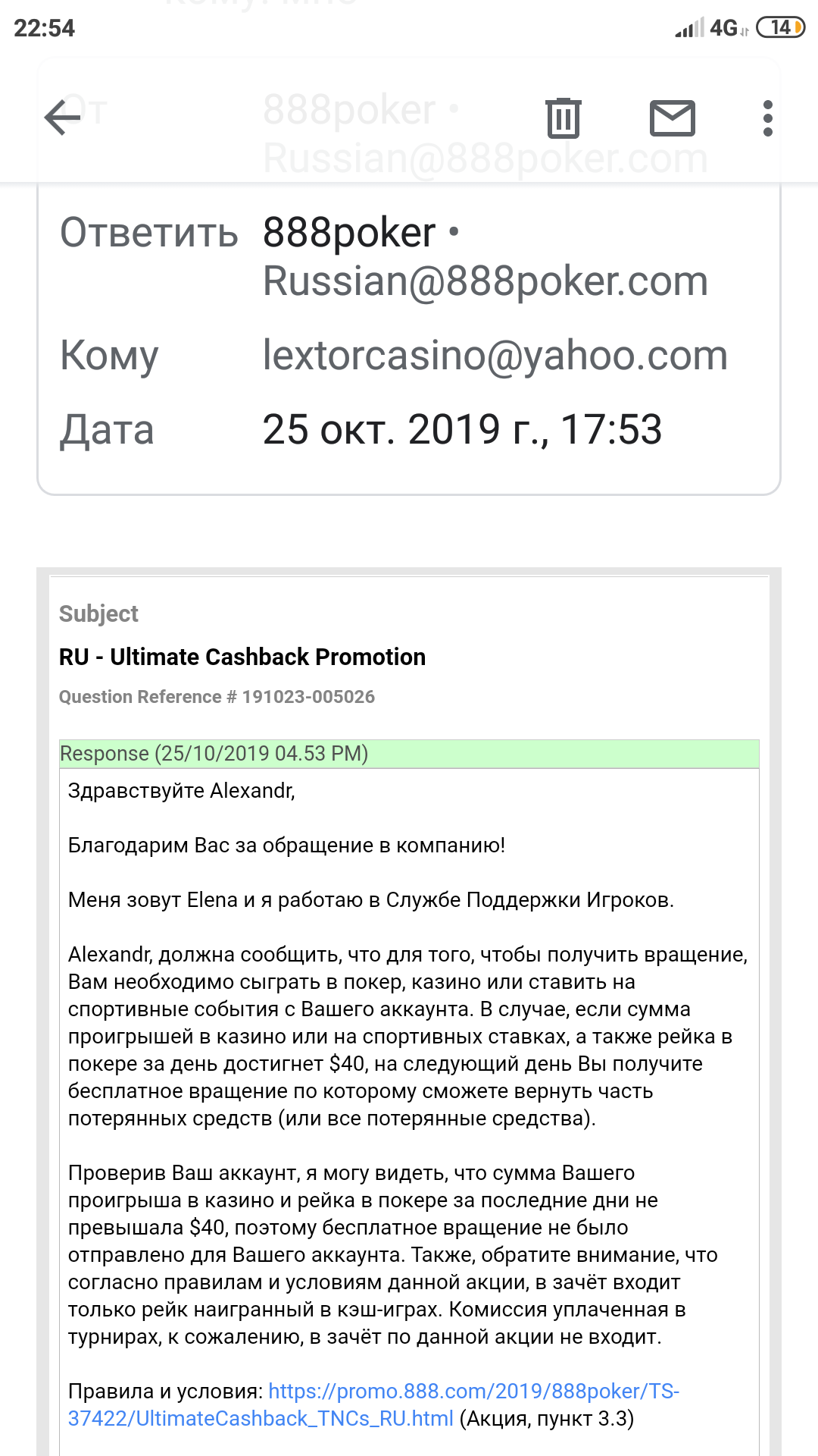 Как и обещал, кидаю пруфы на данную акцию. На телефоне акция с кешбеком не открывается. На ноутбуке в Web версии, тоже. И даже в приложении))) Техническая поддержка молчит, наверно заняты. Вот такой ребята рейк... HELP me, poker 888!!!