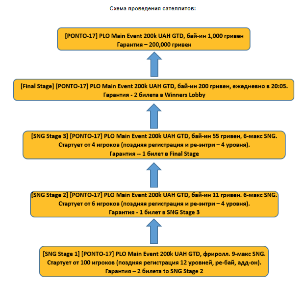Также вас ждёт Главное событие с гарантией в 200,000 гривен (бай-ин 1,000 гривен). Попасть на этот турнир серии PONTO можно и через сателлиты, которые будут проходить ежедневно с 9 по 24 ноября — можно начать с фрироллов. Каждый день в финальном сателлите будет разыгрываться по 2 билета на Главное событие.