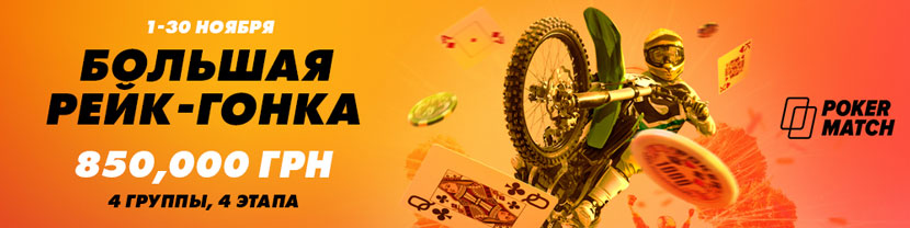 С 1 по 30 ноября на PokerMatch пройдут две интересных акции, которые подойдут сразу двум категориям игроков: любителям кэш игр и любителям турниров. “Большая рейк-гонка” разыграет призовой фонд в 850,000 гривен, а вот “Турниромания” гарантирует призовой фонд в 500,000 гривен.