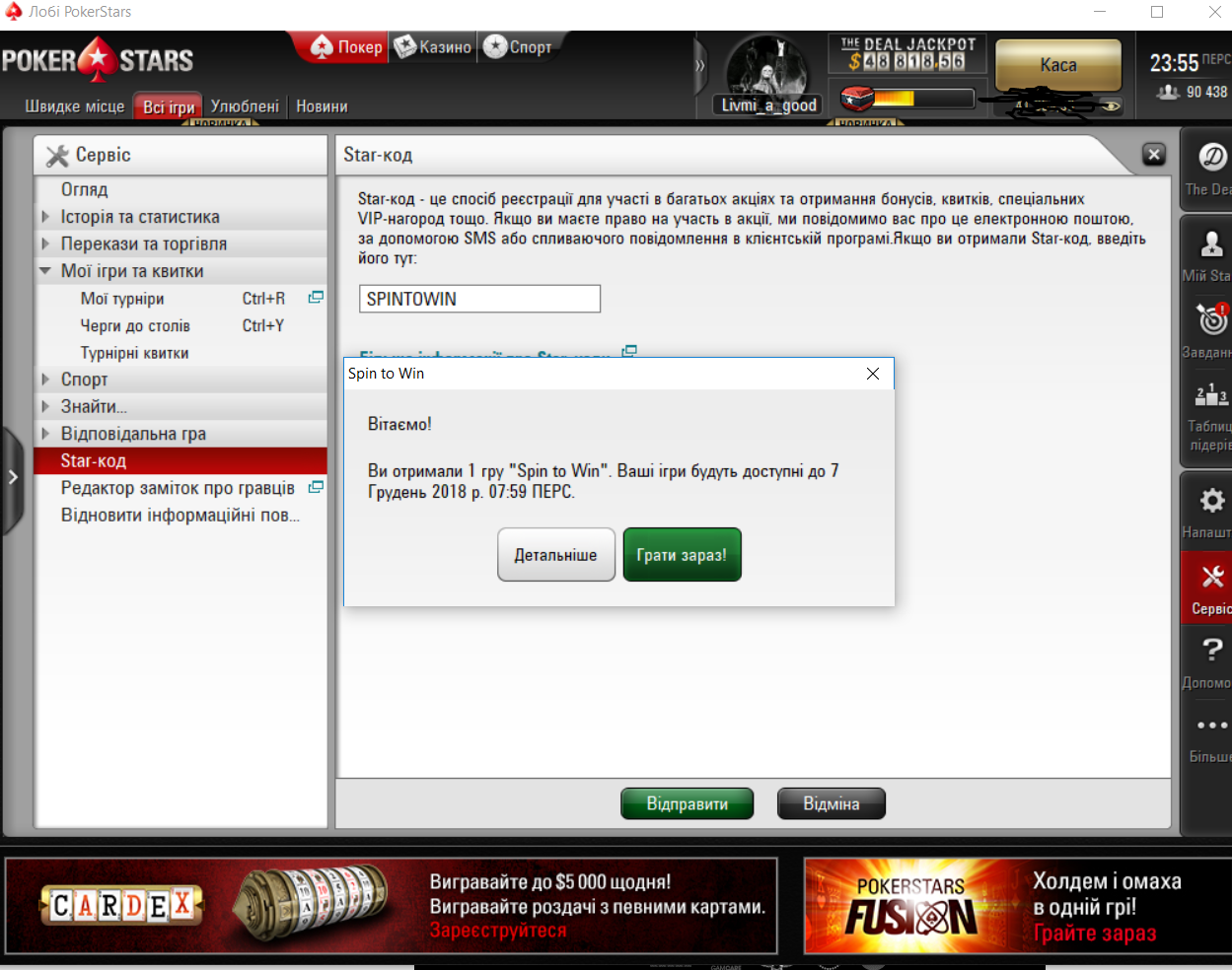 Никаких требований по ставкам или отыгрывания. Star-код и игровые билеты действительны до 6 декабря 2018 года.