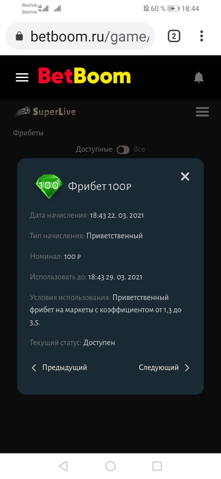 Тоже зашёл и дали фрибет 100руб. Теперь нужно разобраться как в этот Super Live играть. 🤔
