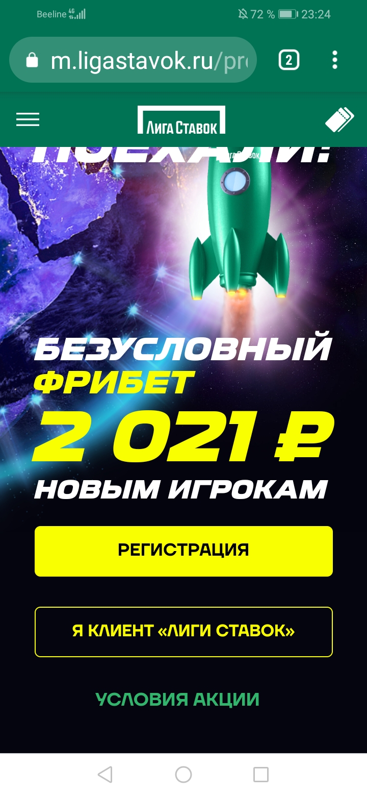 Для участия в акции необходимо зарегистрироваться на сайте www.ligastavok.ru или мобильном приложении с 12 апреля 2021 года (00:01 МСК) по 4 мая 2021 года (23:59 МСК).