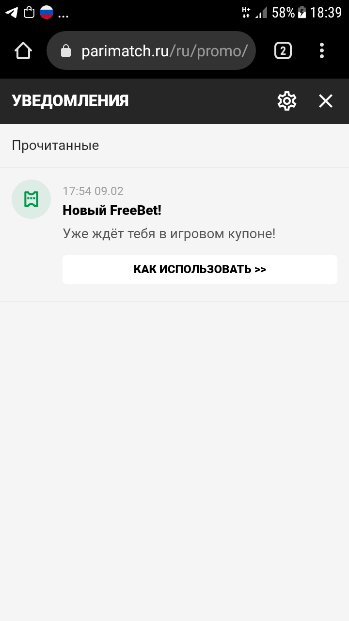 Проверяйте почту, пришло письмо с 200руб фрибетом.