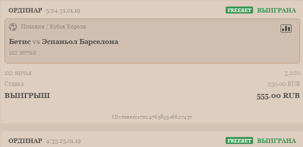 Прошлый фрибет поставил на ничью Бетис-Эспаньол,вчера в новостях смотрю 3-1,ну я и не заглядывал в Джой,думаю не сыграла)