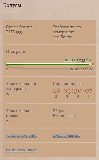 - Максимальная сумма выигрыша с бонуса - 50 EUR.