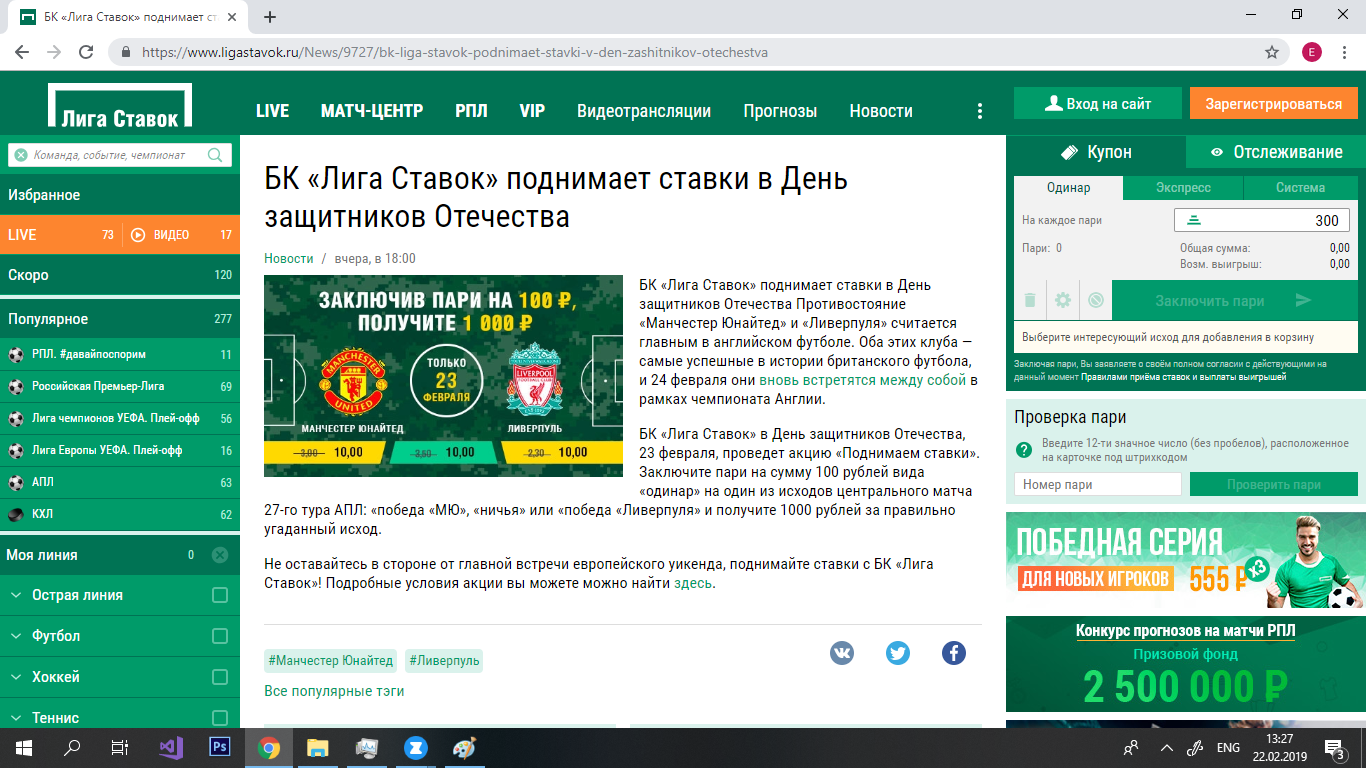 7. Ставка может состоять из одного события и/или комбинироваться в экспрессе при условии, что все события в экспрессе должны быть оформлены с коэффициентом не менее 1,20 каждое и с общим коэффициентом экспресса не менее 1,85.