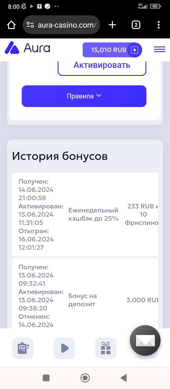 У меня на балансе был 0 как начислили начал крутить но бонус явно не активировал же никакой в истории не отображается , ну или я в упор не вижу
