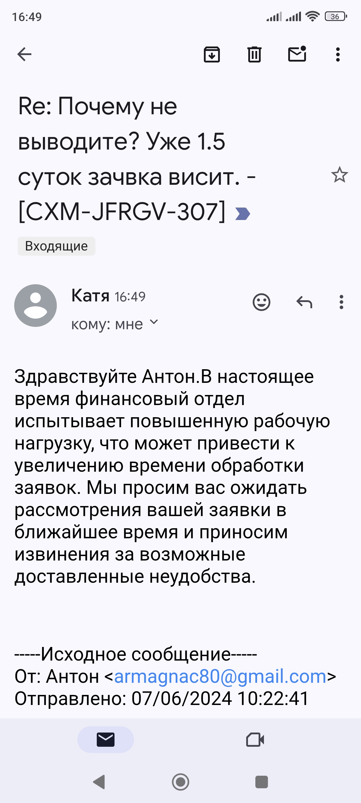 Мне так ни рубля не вывели. Чата нет, сроки вышли ещё вчера регламента 24 часа.