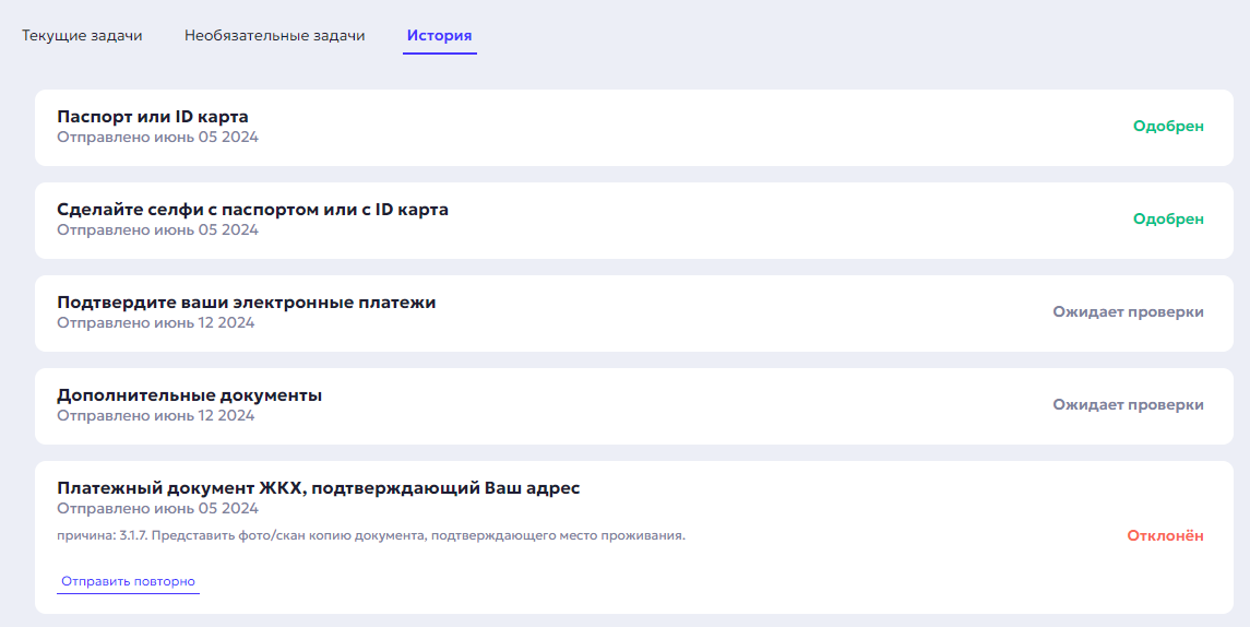 5 июня были доки загружены,паспорт и селфи одобрены,выписка из банка отклонена куй знает почему.Так же было, чат только был доступен, верификацию пройти, и потом ставь на вывод