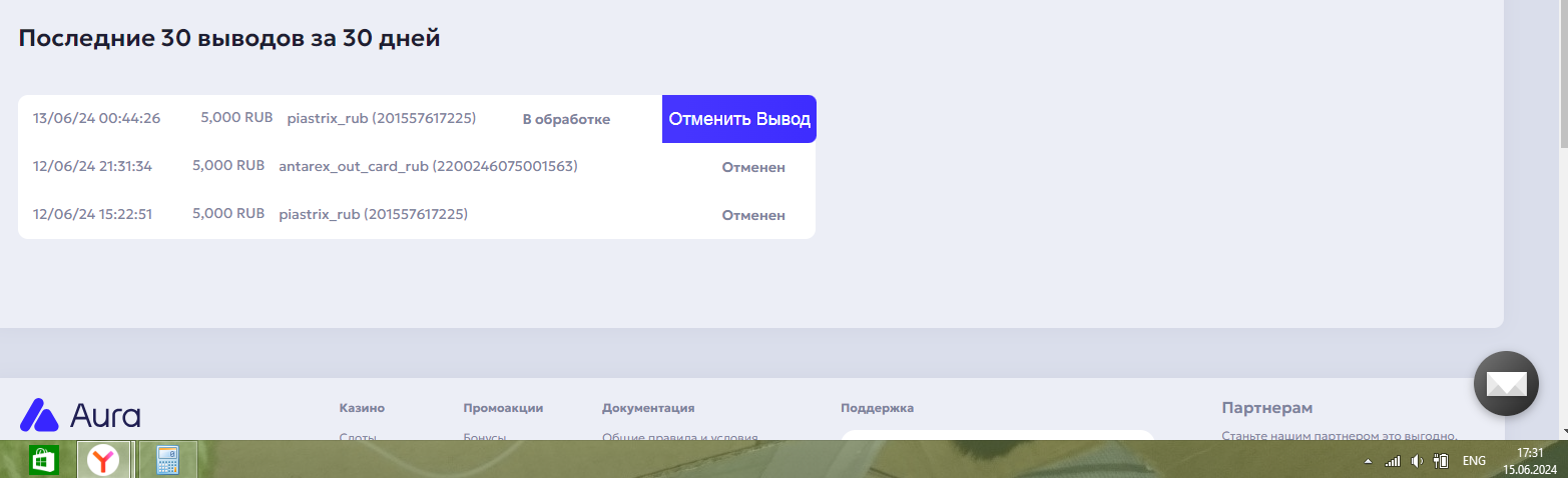 Прикинул что пять косарей дарить им неохота и как начали выплачивать людям депнул косарь без бонуса,хотел оборот сделать и вывод затестить.