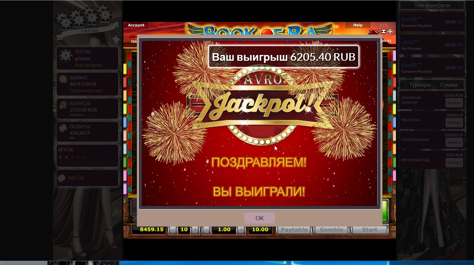 решила поднять ставку на 6 евро,3 прокрутки еще бонус)) Х-75.50