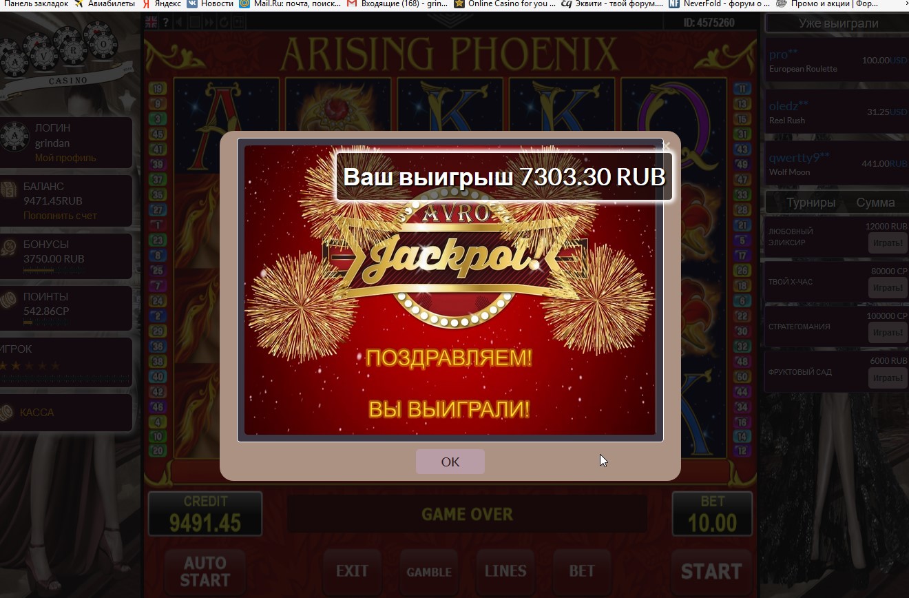 ваш один скрин не посчитала!у нас нет джекпот в игре arising phoenixИ ну и парочка тяжеловесов: