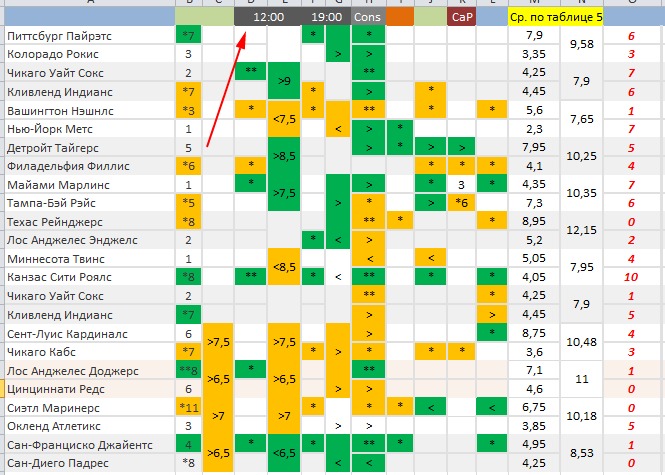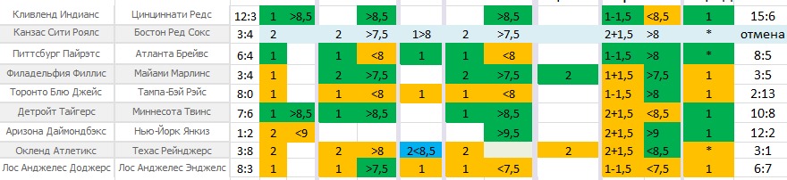 Результат после 5 иннингов: П1 @ 1.94