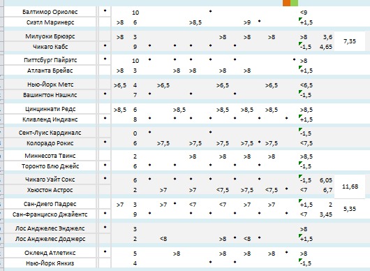 В бетсе есть немного.. пока на "кошках тренироваться" буду.. Стату собирать по МЛБ.. ждать "приходов". С недельку в грядках на даче поковыряюсь.:fool: