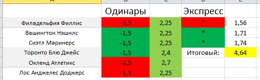 Л.А. Доджерс - Л.А. Энджелс Л.А. Доджерс ИТБ1(3.5) 1.67