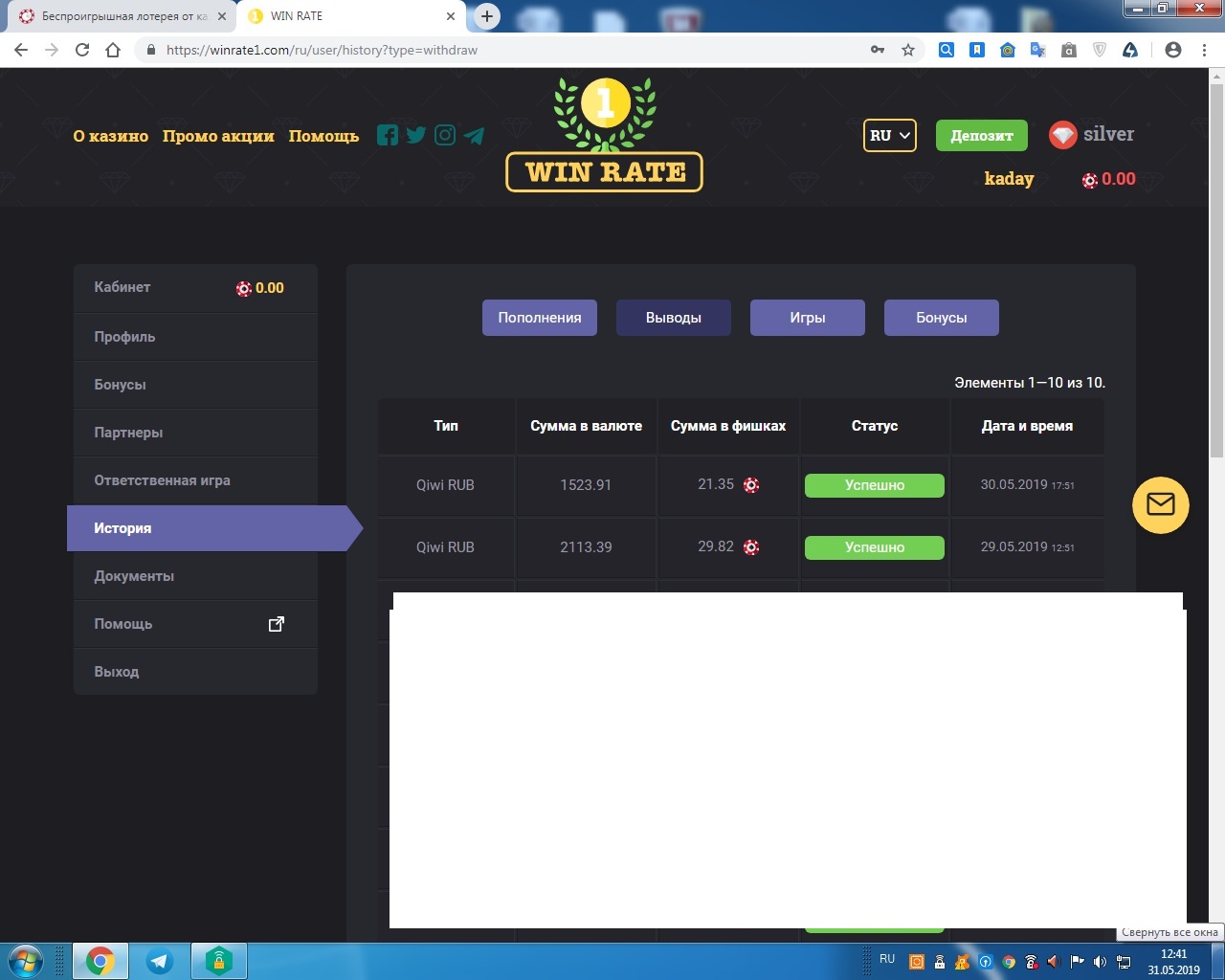 Скрин не обрезать, должен быть виден логотип казино, время и дата. Если играете с телефона - добавляйте скрин из истории!