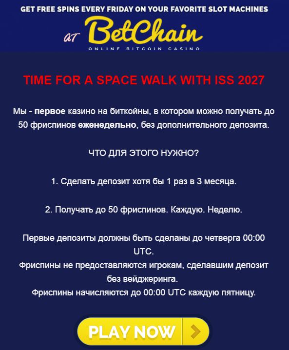 Казино BetChain приглашает в в акцию "Фриспины по пятницам" – каждую неделю Вы в выигрыше!