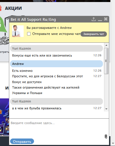 а че у тебя казино заблокировано?у меня с россии норм заходит,а ты ж вроде с казахстанаВчера зарегистрировался,получил ФС,начал играть.набил 219 евро,и осталось отыграть примерно столько же по вейджеру. Вдруг аккаунт заблочили.Написал в поддержку что за дела мол мультиков не имею,почему блокировка.использую впн Оперы для обхода блокировки провайдером. сегодня получил ответ