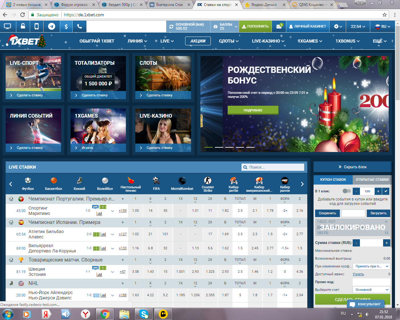 Деньги пришли на базу. Бонус 200% дали. Один под ставки второй под 1Хгеймс.