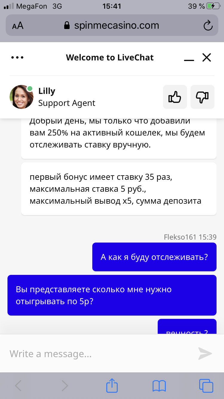 Бы ответили вам на ваше сообщение, бонус обязательно начислим. Сначала вы играете депозитом. Мы в чате-обращайтесь